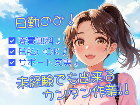 シール貼り/棚卸/運搬/搬入/工場内作業/軽作業スタッフ/構内作業/組立/組付/プレス/加工/梱包/包装/仕分け/検品/検査/チェック/ピッキング/ラベル貼り/ボタンを押すだけ/食品工場/食品製造/加工/ライン作業/工場/手のひらサイズ/住み込み/寮完備/社宅/寮費無料/キレイな1R/カップル寮/家族寮/広めの寮/即入寮/スグ入寮/待機寮完備/社会保険完備/社員登用制度有/研修あり/送迎/駅チカ/自転車通勤/バイク通勤/交通費全額支給/交通費支給/昇給制度有/賞与/未経験歓迎/経験不問/経験者優遇/フリーター歓迎/学歴不問/友達と応募可能/WEB面接/事業所面接/リモート面接/高収入/高時給/週払い/日払い/前払い/大量募集/急募/スグ就業/スグ面接/選考緩い/男女活躍/女性活躍/20代活躍中/30代活躍中/若手活躍中/日勤/2交替/3交代/土日休み/土日祝休み/平日のみ/5勤2休/4勤2休/GW有/夏季休暇有/残業時間20時間以下/残業時間20時間以上/カップル同シフト/単身就業カップル入寮/転勤なし/出稼ぎ/安定/モノづくり/工場/寮環境がいい/職場環境がいい/キレイな職場/人間関係がイイ/離職率少ない/定着率がイイ/長期/倉庫内作業/簡単/カンタン作業/コツコツ作業/モクモク作業/単純作業/サポート/製造/製造スタッフ/製造補助/オペレーター/自動車部品/電子部品/半導体/物流/倉庫/管理/電子部品/男性/冷暖房完備/空調完備/クリーンルーム/屋内作業/在宅面接/オンライン面接/電話面接/履歴書不要/来社不要/工場内作業/期間従業員/自動車部品