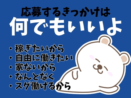 ⇒将来的なキャリアチェンジや正社員登用を目指せる案件もあり、「とりあえず今の生活を整えながら、先のことも考えたい」方にぴったりです。